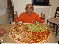 第45回 H16.6.8 サンディエゴの夜 ハーバーマスター高田君、初めての海外旅行で大騒ぎ、彼のリクエストで宅配ピザをたのんでみました。 大人4人でも食べ切れず、高田君は確か3切れでギブアップしました。(カナル特派員サンディ家の1コマ) |