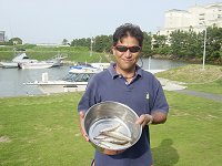 第48回 H16.6.11 オーナー伊藤さん ビール片手に短時間でキス釣り 背開きで、から揚げまだまだ飲みます。 浜名湖の初夏の楽しみ釣り&イート。みなさまもお越しください。 |