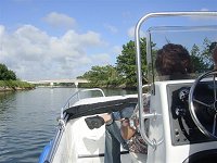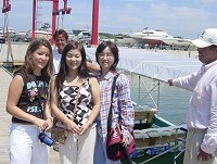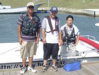 第69回 H16.7.16 エクシブ\(エクシブ浜名湖専用艇) とにかく暑い一日です、風も温風のようになっております。 給油の為、桟橋に着岸準備です。 |