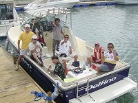 第66回 H16.7.11 クアトロU デルフィーノ無事生還 鳥羽遠征からスケジュール無事生還いたしました。 行きはよいよい、帰りは今切付近でかなり荒れたようです。 しかし、最後は館山寺の館山寺園で祝杯をしたそうな? |