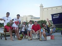 第70回 H16.7.17 カナルテントの下で マリブサンセッターの皆さん強風の中テントの移動しながらBBQ大会 メンバーの人間関係は不明です。 カナルレンタルテント(イエロー) |