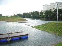 第91回 H16.8.30 台風16号接近中 台風はまだ九州の南なのに 大潮の満潮、カナル湾出入り口付近はもう少しで沈みそうです。 (30早朝) 高潮警報が出ています、台風にみなさんも注意しましょう。 |