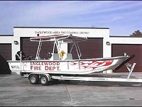 第92回 H16.9.3 アメリカレポートC アメリカではカロライナスキッフが各方面で活躍しています。 災害レスキューとして今回は後部にポンプを装備した消防艇です。 (ベースは2790DLXモデル) |
