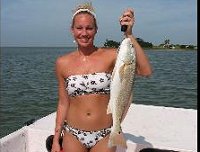第94回 H16.9.10 ここはフロリダ? カロライナスキフ2180DLXで村櫛沖の浅瀬をキャスティング シーバス3本ゲットしました。 オプションのプラットホームからの眺めは最高。 追ってくるシーバスも見ることが出来ます。 (水深約30cm)スキフ(喫水10cm) |