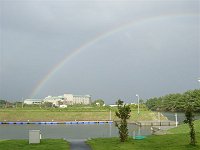 第100回 H16.9.25 雨間のレインボー 金曜日は雨が降ったり止んだり天気がはっきりしません。 おかげで芝刈り&草刈が出来なくて・・ウゥウ・残念 しかし、大きな虹がカリアックからエクシブ浜名湖に架けて見ることが出来ました。 |