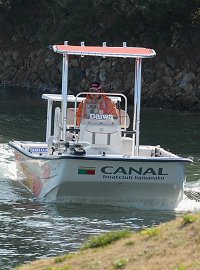 まずはカナルの前庭の水路を走るスキッフをお見せします。 今日は写真を撮りながらの航行、浜名湖でもおなじみとなりましたカロライナ・スキッフですが、ラッピングスペシャルは初お目見え、浜名湖を走るスキッフはこんな風に見えることと思います。 ※カナルでラッピング提案から施工まで承ります。 |