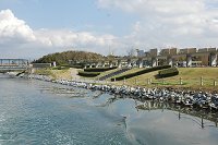 カナル前の水路を一本西へ行けば南に抜ける浜名湖ガーデンパークを南北に横切る水路、前回のレポートでは浜名湖花博覧開幕前日の様子をレポートしましたが、現在もガーデンパークには多くのお客さまがやってきます。 カナルは賑わうガーデンパークの北側水路沿いにあります。 |