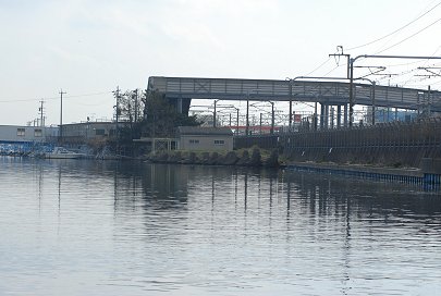 | JR新居駅にかかる橋は勝どき橋、競艇場に続く橋らしいネーミングですね。 この辺はおかっぱりの釣り場としても人気があります。 |