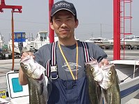 第12回 H16.4.25 シーバス カナルを早朝からお使いいただくのは清水さん、今日も狙いのシーバスポイントを責め、ご覧のような釣果をあげました。 浜名湖はマリンレジャーの中でも釣魚が多く、黒鯛、キビレ、シーバスからキス、かわはぎ、ハゼなどなど、プロから家族で楽しむ釣りまで一日楽しめる遊びがたくさんあります。 カナルを拠点にお使い下さい。 |