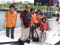 第18回 H16.5.1 夏天気のスキッフの試乗 快晴のカナルへカロライナスキッフの試乗にいらっしゃったのは愛知県の芳賀ファミリー、浜名湖専用艇としてカナルがおススめする艇は幅広で安定感が自慢です。ご主人、奥様と3人のお子さんを乗せハーバーマスターの高田の運転で湖上の試乗を楽しんでいただきました。 |