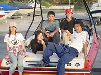 第19回 H16.5.2 仲間で楽しむ浜名湖 またまた、新しい仲間の登場です。 その名は”マリブ サンセッターです。 仲間で船を持ち、浜名湖を楽しんでいらしゃいます。 パーティではスタッフとして協力してくれています。 みんなで楽しむカナル!ヨロシコ!! |