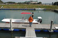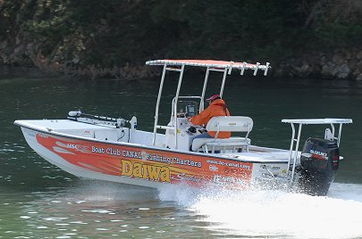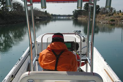 水路を抜けて再び広い湖に出てきました。 ここから右に進路をとれば、浜名湖の奥座敷、舘山寺へ向かうことができます。 ここでカナルスペシャル艇の速度テストを行いました。(余裕で64kmを記録しました) 浜名湖は周囲110kmほどもある大きな湖です。 ポイント間の移動を安全に注意しながら、楽しんでいます。 |
