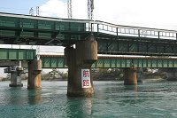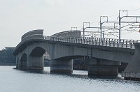 | JR新居駅にかかる橋は勝どき橋、競艇場に続く橋らしいネーミングですね。 この辺はおかっぱりの釣り場としても人気があります。 |