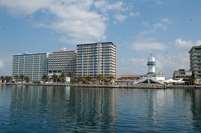 もう一度南へ戻り、水路を北へ進み、EXVを右に見て水路を航行します。 カナルは開業5年、翌年から建設が始まったEXVとともに新しい浜名湖のリゾート地域を作り上げています。 |