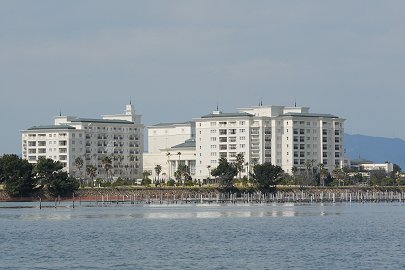 白亜の建物、浜名湖EXV 浜名湖ガーデンパークを東へ回れば浜名湖のどこからも遠望できるEXV浜名湖が見えてきます。 開業以来、浜名湖を臨む新リゾートホテルとして多くの会員の皆さんが新たに浜名湖にいらっしゃるようになりました。 |
